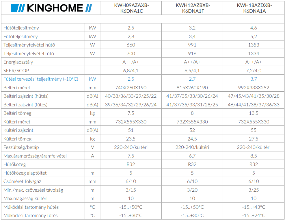 A Kinghome KWH18AZDXB-K6DNA1A Primor Inverteres Split klíma fontos tulajdonságai: